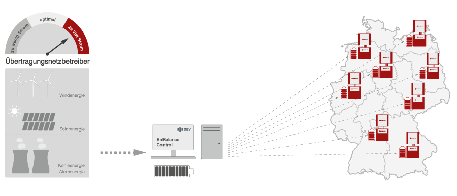 Mit dem innovativen Konzept hinter Econamic Grid kann der überschüssige Strom in die einzelnen Speicher geladen werden. Damit ein Betreiber an der Direktvermarktung von Regelenergie teilnehmen kann, muss eine Mindestleistung von 5 Megawatt verfügbar sein. Jedoch mit mehr als 2.400 betriebenen Speichern, die eine Gesamtleistung von 6 Megawatt haben und etwa 200 Wärmeenergie-Kunden (Gesamtleistung: etwa 2 Megawatt) sind bereits jetzt die Leistungsanforderungen erfüllt.